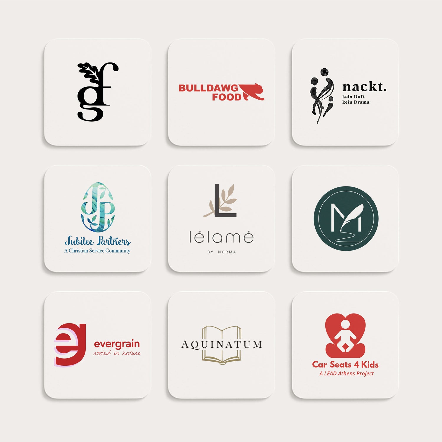 Ich habe für verschiedene Unternehmen individuelle Logos entworfen – jedes mit eigenen Anforderungen. Dabei lege ich Wert auf enge Zusammenarbeit und darauf, Logos zu gestalten, die nicht nur gut aussehen, sondern in allen Anwendungen funktionieren.