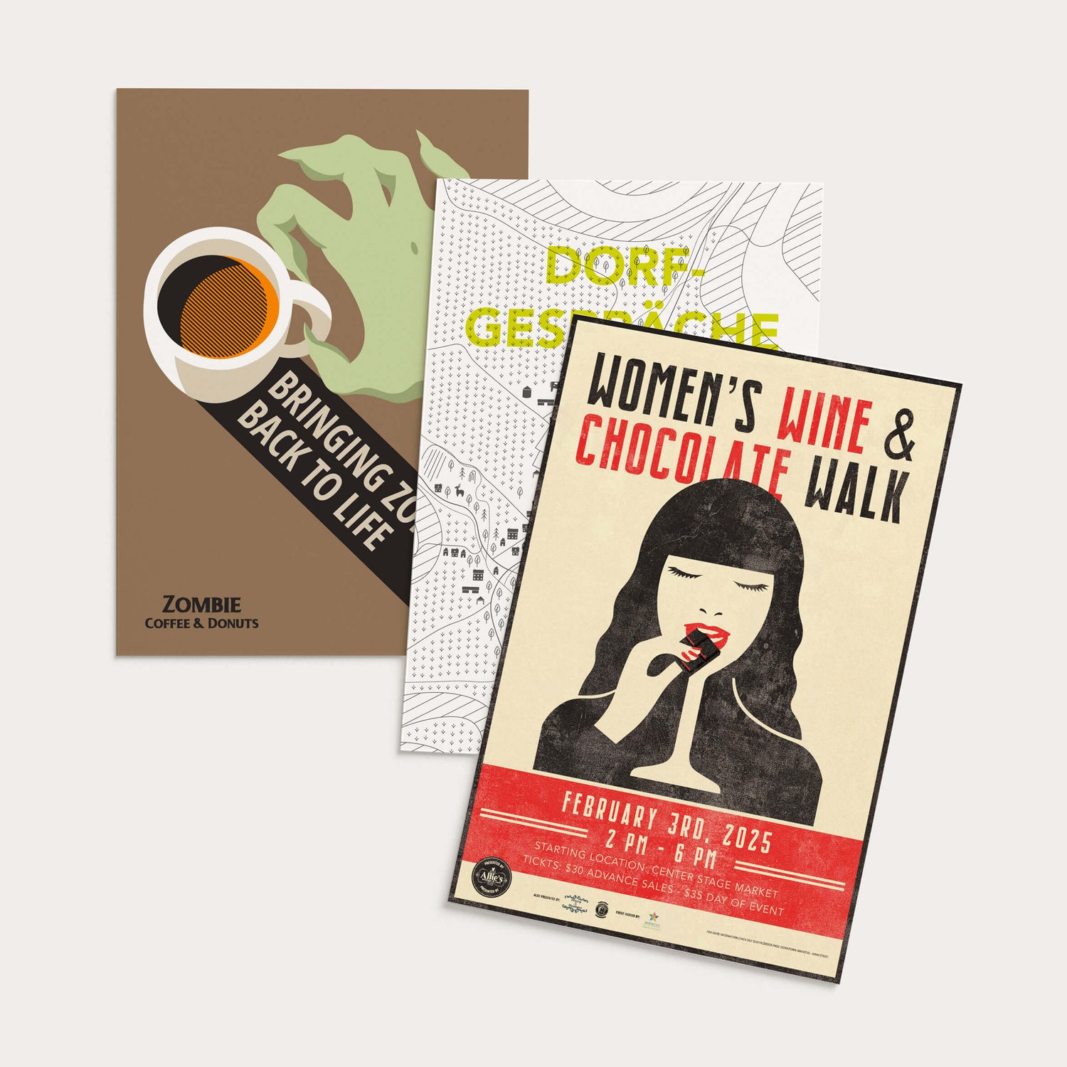 Flyer und Plakate gehören zu meinen liebsten Designprojekten. Ob für Events, Werbung oder als Wandgestaltung – die Verbindung von Text, Bild und Fotografie ist für mich eine spannende kreative Aufgabe mit großem kommunikativen Potenzial.